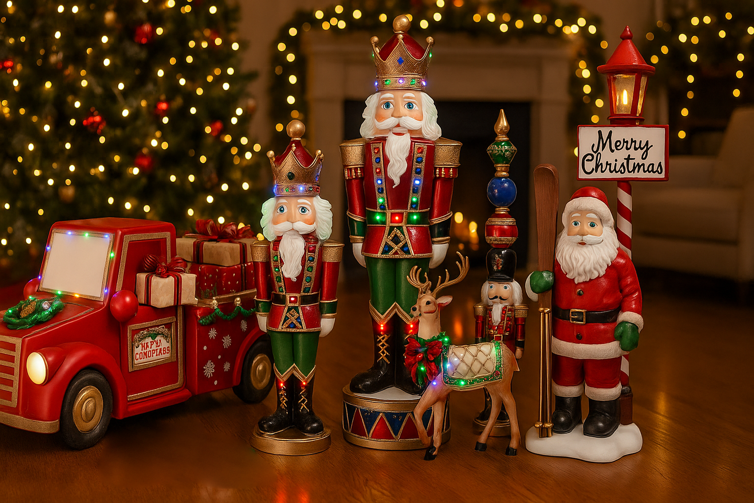 Scopri i decori natalizi di grande formato firmati Lorenzon: renne, schiaccianoci e Babbi Natale che trasformano ogni spazio in un magico villaggio delle feste.