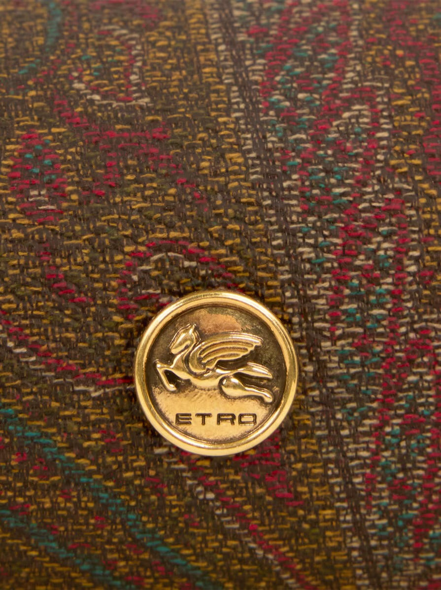 Astuccio portapenne realizzato nell'iconico tessuto Paisley jacquard con inserti in pelle. Il modello è completato da una chiusura con zip rifinita dal cursore dorato e dall'emblematica moneta in metallo con logo Pegaso, ottenuta tramite coniatura.