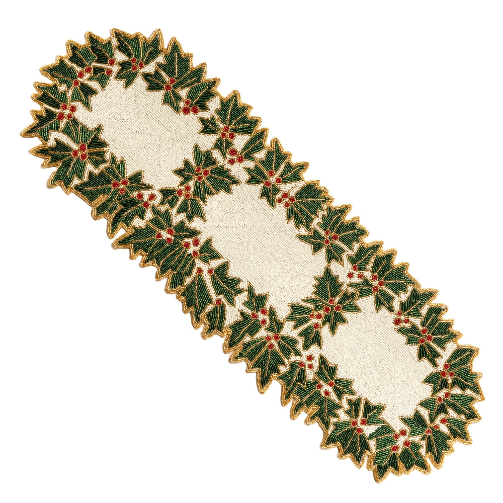 Un centro fatto interamente di perline che descrive un bellissimo agrifoglio.