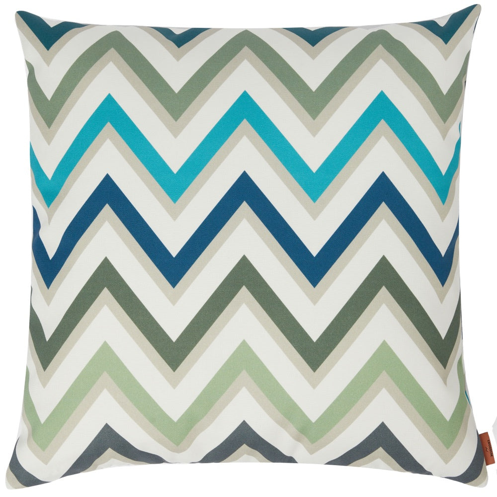 Questo cuscino decorativo per interni ed esterni Missoni Watamu 161 con motivo a zigzag su larga scala, disponibile in una tavolozza di colori verdi, illuminerà qualsiasi spazio, interno o esterno.