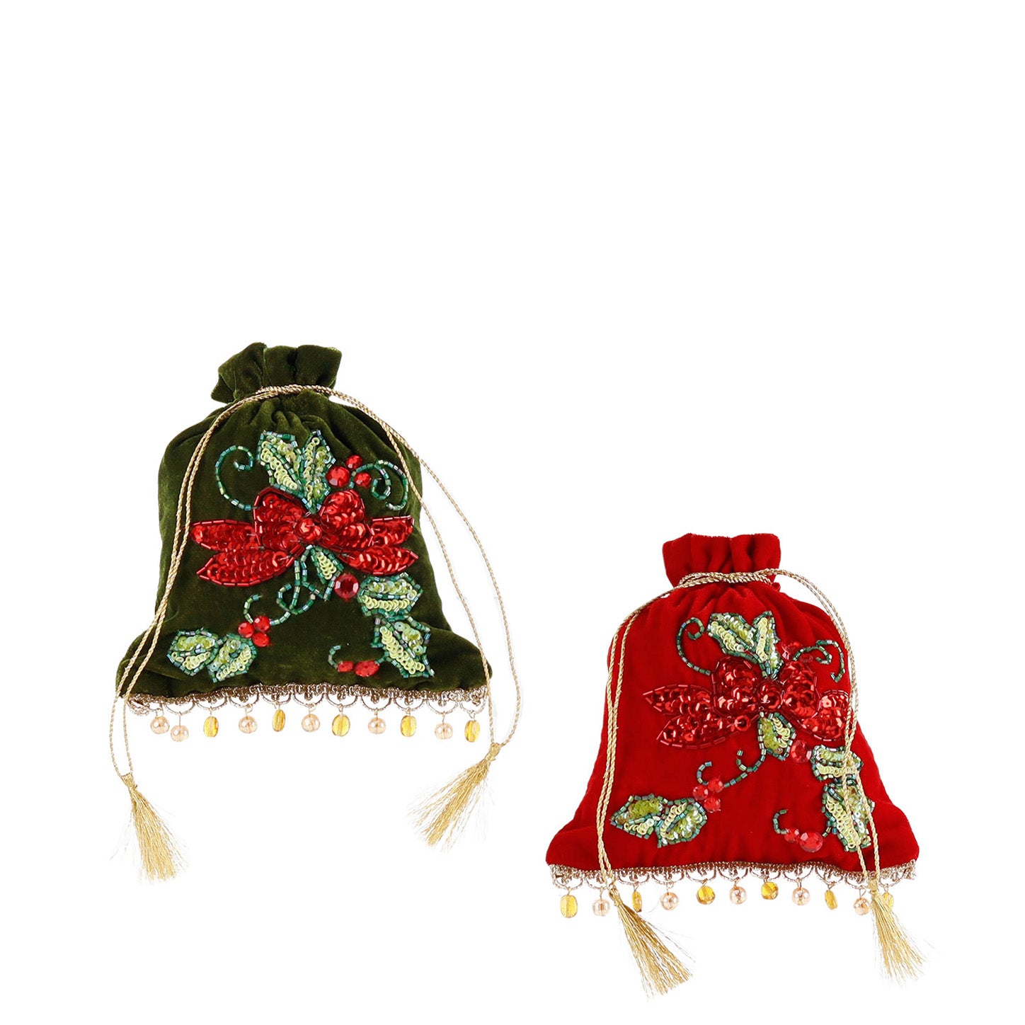 Sacchetti natalizi con bacche, agrifoglio e fiocchi