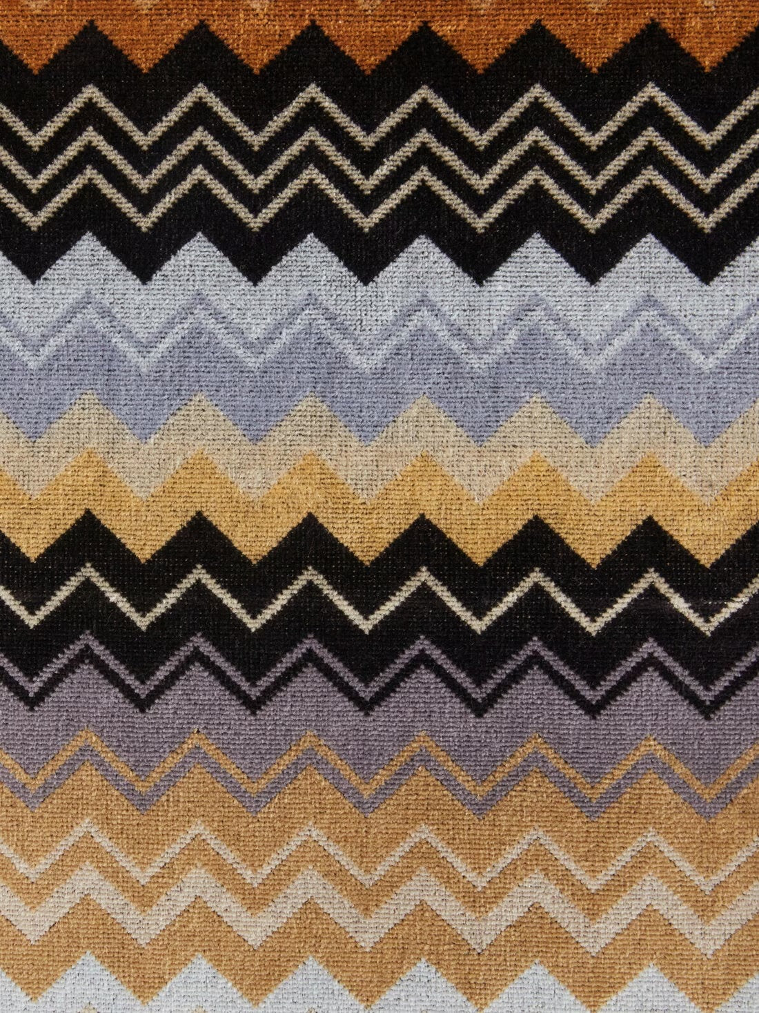 Il set due pezzi di asciugamani Giacomo è la quintessenza dello stile Missoni: qui la qualità della spugna di cotone velour incontra la definizione della stampa chevron, che si tuffa nei bordi rigati per animare questa coppia di teli viso e ospite bello e senza tempo.