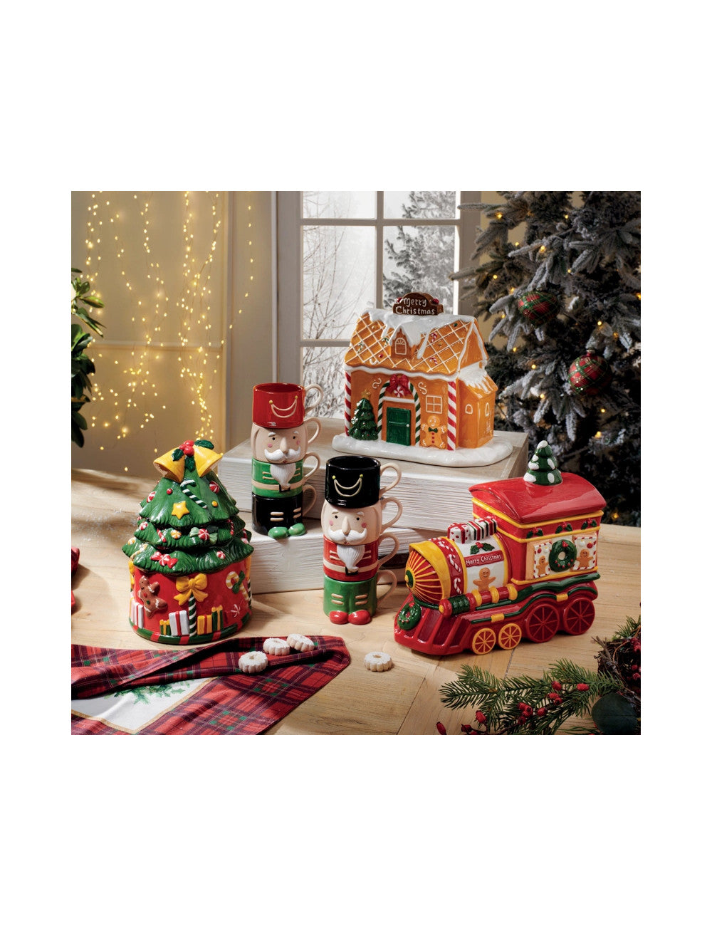 Set di quattro pezzi da riporre comodamente uno sopra l'altro fino a formare un simpatico e benevolo soldatino! Un modo per incontrarsi a tavola, condividendo la serenità di chi, alla magia del Natale, ci crede ancora.