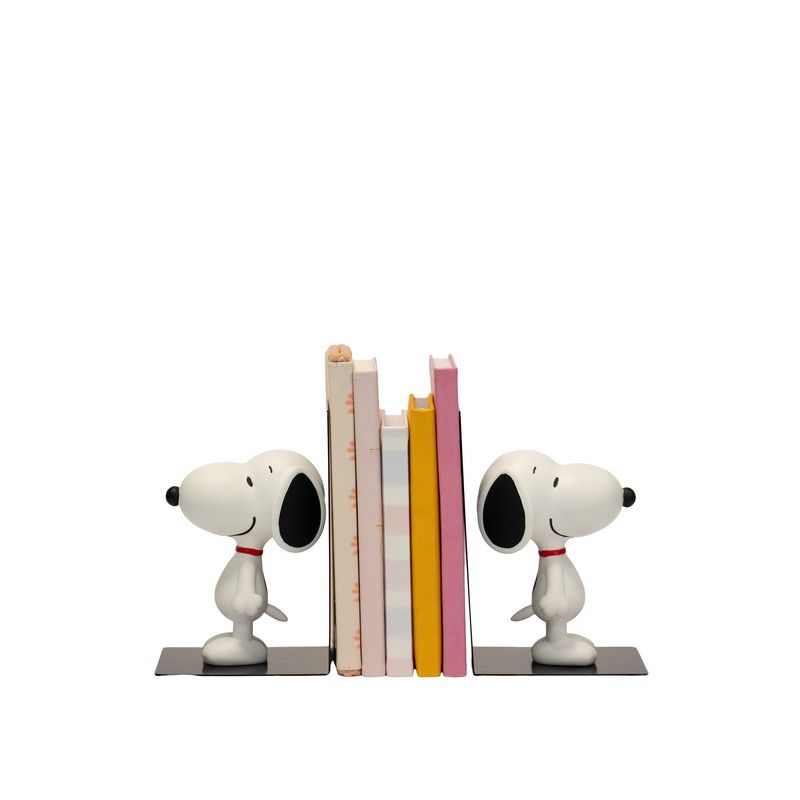 Mantieni i tuoi scaffali in ordine con questo grazioso set di fermalibri a tema Snoopy, disponibile in tre versioni uniche: Snoopy con cuore, Joe Cool Snoopy con occhiali da sole e Snoopy classico. Ogni coppia è realizzata in resina resistente e montata su una robusta base in metallo, garantendo funzionalità e divertimento.