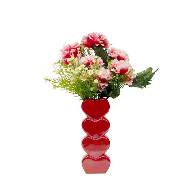 Aggiungi un tocco d'amore al tuo spazio con questo vaso in ceramica a forma di cuore della collezione Sweet Bloom. Composto da quattro cuori lucidi scolpiti, questo pezzo unico fonde il fascino romantico con un design moderno e giocoso. Che sia abbinato a fiori freschi o utilizzato singolarmente come oggetto decorativo, aggiunge calore e colore a qualsiasi interno. Disponibile in due varianti di colore: mix di rosa e rosso e rosso pieno, questo vaso è ideale come regalo, per occasioni speciali o come allegro elemento decorativo per la casa durante tutto l'anno.