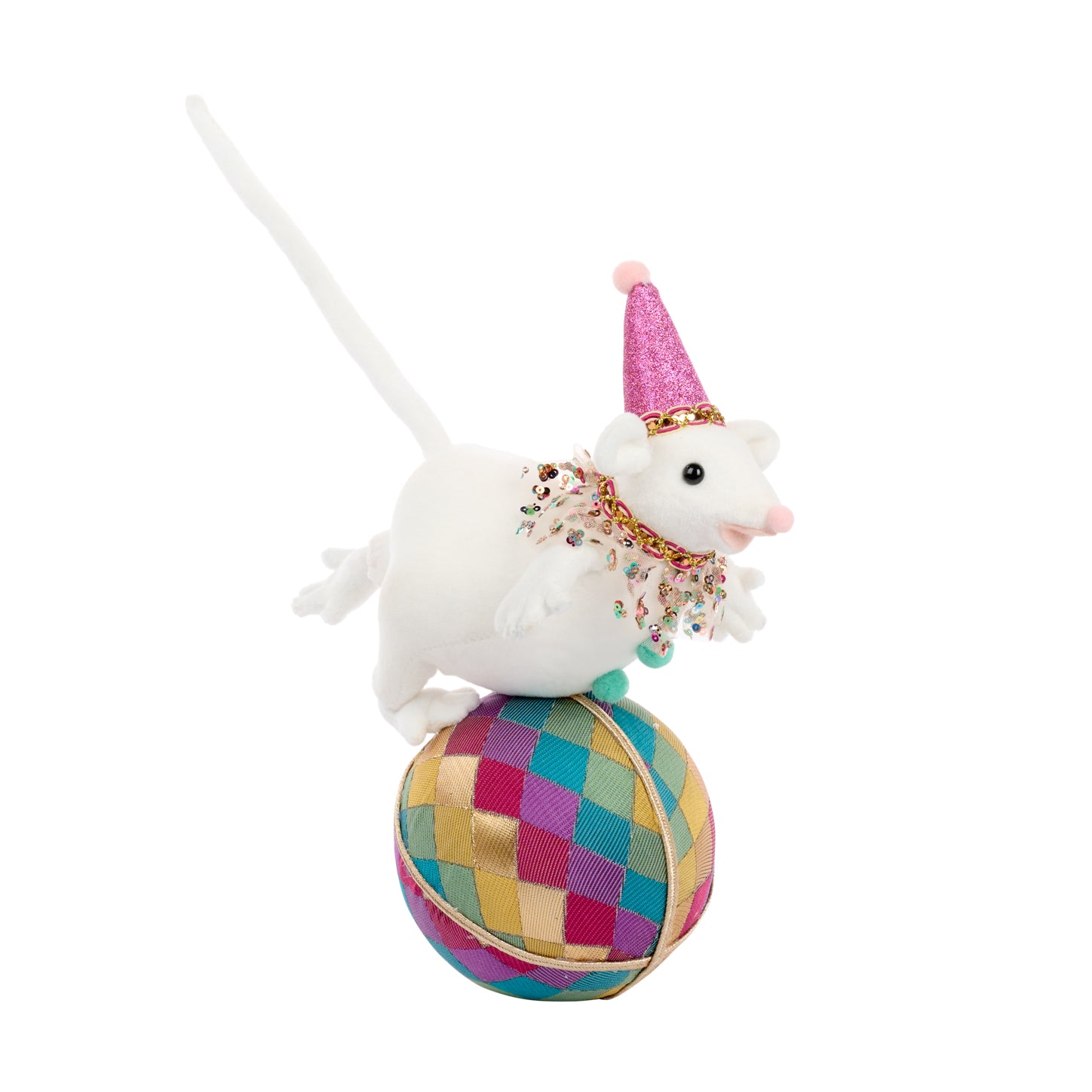 Topo da circo di carnevale di zucchero filato su palla da tavolo
